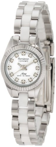 Armitron Women s 75 4034WTSV White Ceramic Swarovski Crystal Accented Silver Tone Watch