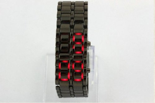 HOT SALE Lava Iron Samurai Metal Red LED Faceless Black Bracelet Watch