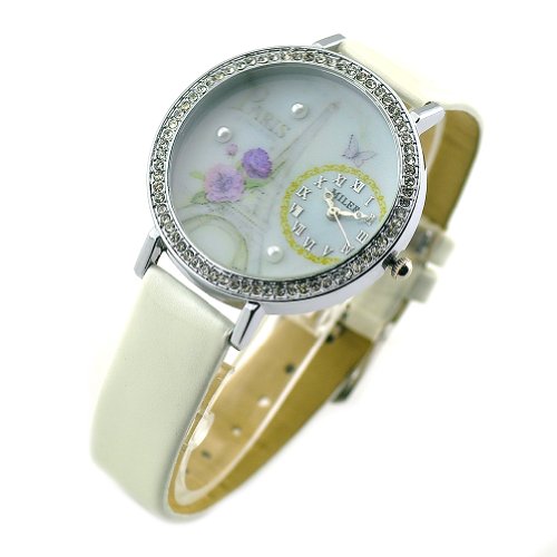 Miler Fashion Crystal Genuine Leather Women s Watch Small Dial Display Rose Flower Pearl Paris Eiffel Tower