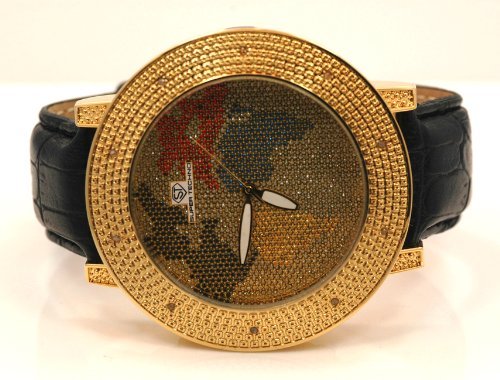 Super Techno Mens World Map 0 10ctw Diamond Watch M9012